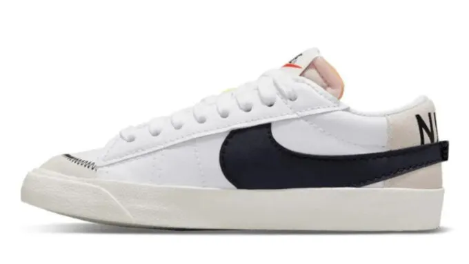 «Блейзеры» имеют верх белого и кремового цветов, огромный свуш, яркую строчку и белые жирные шнурки. Создавались как классический баскетбольный образ, но хорошо гармонируют почти с любой одеждой.