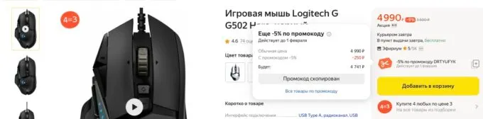 Сейчас на Яндекс Маркете можно урвать Logitech G G502 Hero всего за 4741 рубль по промокоду DRTYUFYK, а с кэшбеками некоторых банков она обойдётся ещё дешевле.