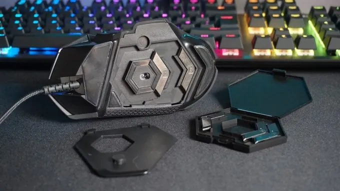 RGB-подсветка тут довольно минималистичная — светится только буква G. В этом есть свои плюсы для тех, кто не ищет себе новогоднюю ёлку вместо мыши. Отдельного внимания заслуживает комплект Logitech G G502 Hero. В коробке поставляется 5 утяжелителей по 3,6 грамма и специальный футляр для их хранения. С их помощью можно познать дзен, чтобы манипулятор не казался слишком лёгким во время очередной катки.