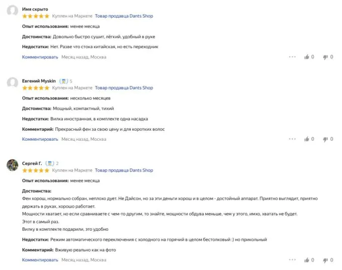 Вот что пишут о Xiaomi Mijia Hair Dryer H501 в отзывах: