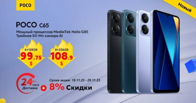 Компания Xiaomi совсем недавно анонсировала доступный смарт Poco C65. Доступный, но стильный телефон уже можно заказать с доставкой из Китая.