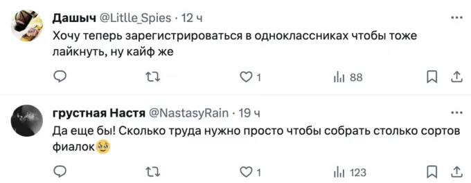 Да, «Одноклассников» возбудили цветы на окне. Как оказалось, многим в твиттере тоже понравилась композиция.
