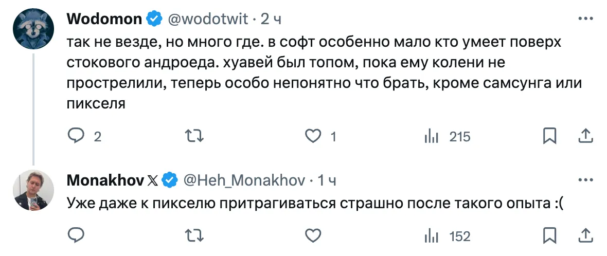 По мнению одного из комментаторов, причина в том, что производители не умеют адаптировать свое железо под стоковый Android. Остается только Google с их Pixel, ну и Samsung — грустная история.