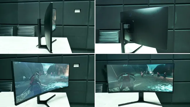 Наш лот получил 34-дюймовый изогнутый LCD-дисплей с VA-матрицей, соотношением сторон 21:9, разрешением 3440×1440 пикселей и частотой обновления 144 Гц. Радиус кривизны в 1500R обеспечивает комфортный просмотр всей площади экрана. Причём даже головой крутить не надо, чтобы увидеть происходящее в дальних углах экрана. Отдельного внимания заслуживают антибликовое покрытие и эргономичная подставка. Последняя позволяет регулировать высоту, наклон и поворот монитора. В комплекте также есть специальные болты для крепления к кронштейну. Так его можно повесить на стену или зацепить к столу.