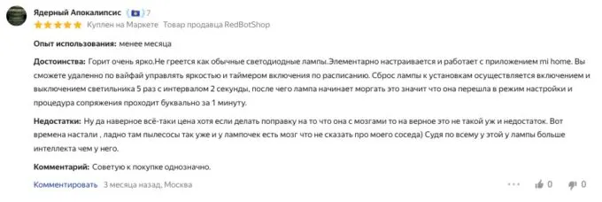 Пожалуй, самая крутая фича лампочки Xiaomi — голосовое управление через Алису или Ассистента Google. Да, с таким девайсом даже тыкать никуда не придётся. Зато можно почувствовать себя большим боссом с личной прислугой, которая за тебя будет выключать свет.