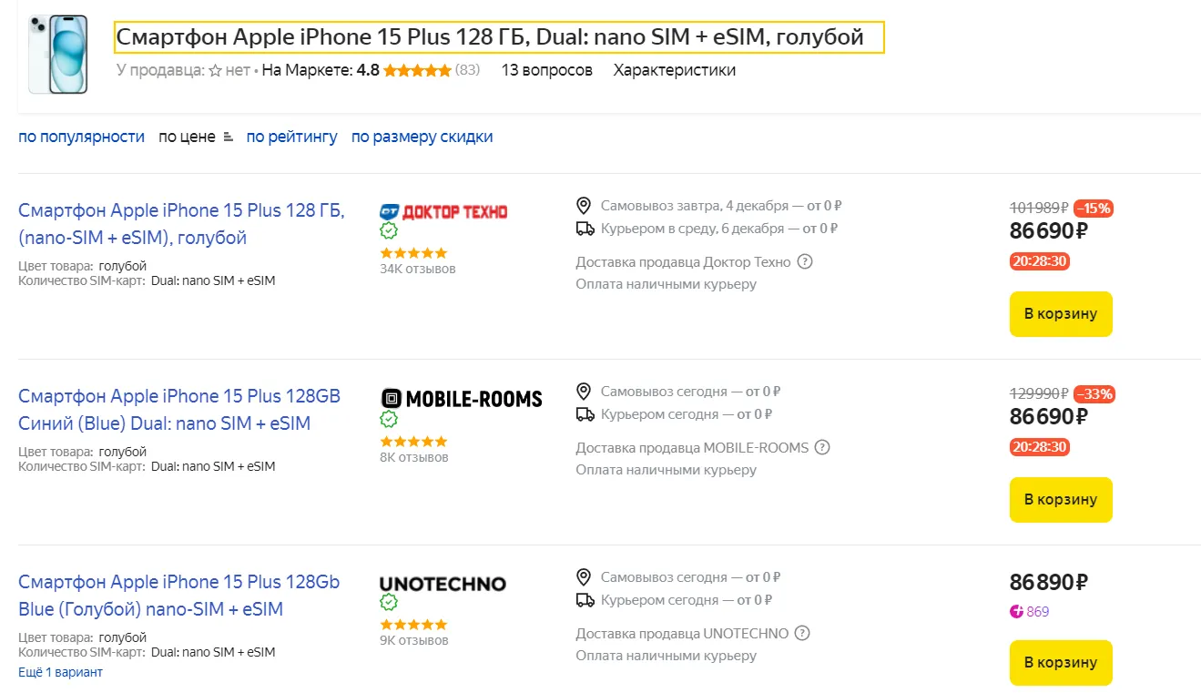 Конечно, фанатам компактных смартфонов советуем хватать iPhone 15 — он небольшой, помещается в любой карман и стоит примерно 82 тысячи. «Плюс» зайдет всем, кто не любит заряжать девайс каждую ночь и готов отдать за смарт 87 штук. Правда, такой прайс актуален для столичных продавцов с Маркета — да, москвичам опять повезло. Ныряйте по этому линку и проверяйте цены в своем регионе.