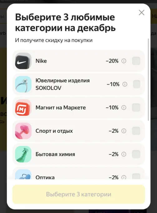 «Яндекс Маркет» для привлечения клиентов добавил функцию «Любимая категория». Она позволяет совершать покупки определенных товаров и получать дополнительную скидку.
