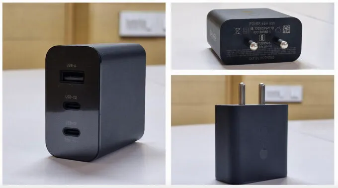 Речь идет о зарядном GaN-адаптере. Устройство имеет мощность 65 Вт и предназначено для одновременного подключения до трех гаджетов. Например, ноутбука, смартфона и планшета. Есть один разъем USB-A и два порта USB-C.