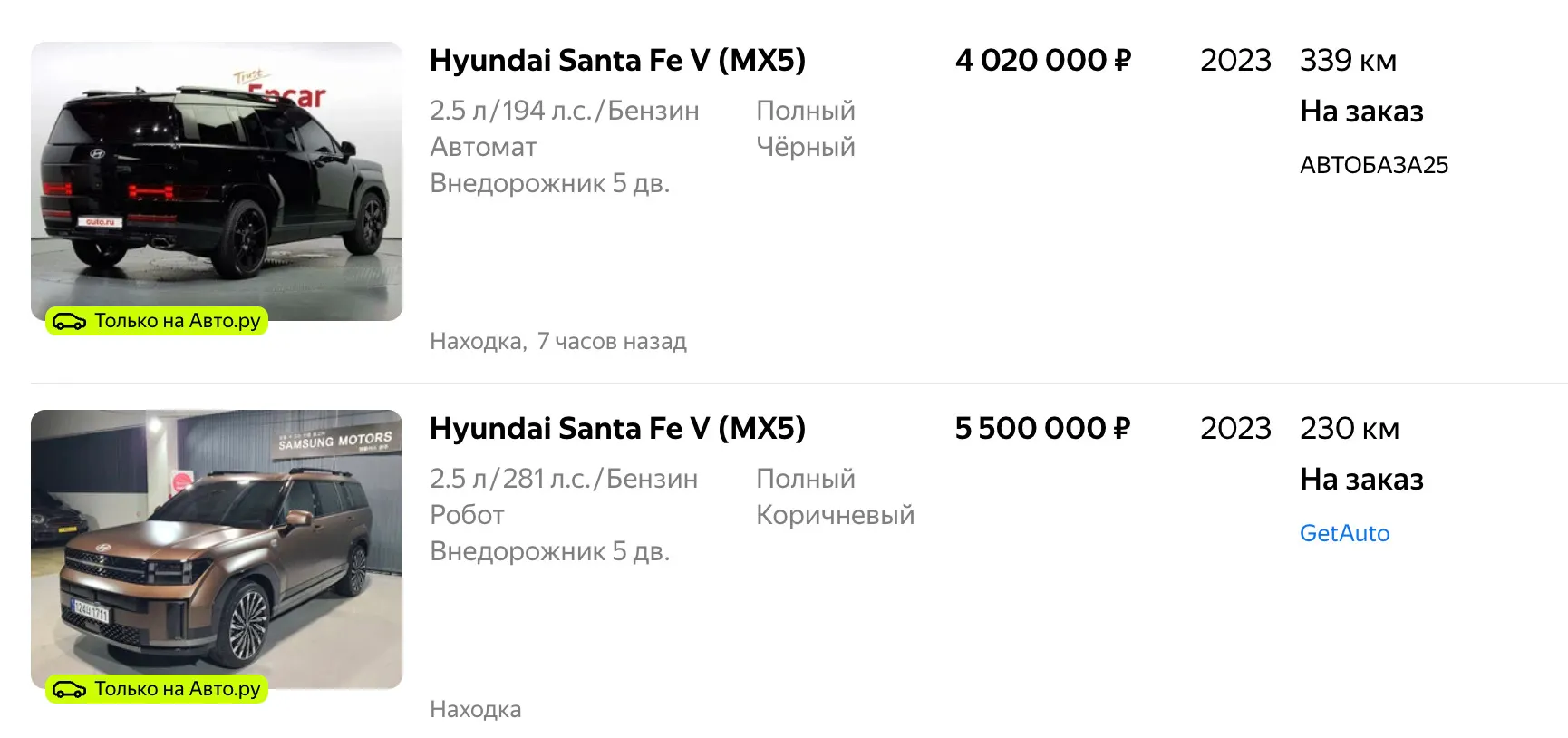 В конце ноября Hyundai Santa Fe можно было купить за 6,9-7,2 млн рублей. Сейчас машина подешевела больше, чем на миллион — кроссовер доступен за 5,8 млн рублей.