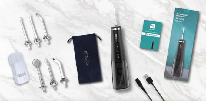 Лучший вариант в подборке, поэтому такой высокий прайс. Зато отличный рейтинг на маркетплейсах и минимальное количество жалоб. Здесь есть пять режимов работы, пять насадок, бак на 220 мл, функция автоматического выключения через 2 минуты работы. Заряжается батарея минимум сутки, зато потом ирригатор можно использовать целых два месяца. Есть сумка для транспортировки. Пользователи отмечают большое количество сервисных центров в России и отзывчивую поддержку.