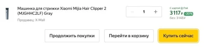 Сейчас топовую машинку Xiaomi Mijia Hair Clipper 2 можно забрать на Яндекс Маркете за 3148 рублей и кэшбекнуть до 10% в некоторых банках.