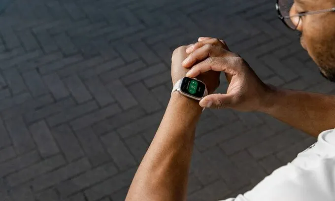 Наш лот получил прямоугольный корпус с закосом под модный Natural Titan, но тут он из алюминия. При этом у него слегка изогнутые грани и две физические кнопки с колёсиком для управления. Часы оборудованы 1,75-дюймовым AMOLED-дисплеем с разрешением 390×450 пикселей и функцией Always-On Display. В целом они смотрятся на руке более органично, чем здоровенные Apple Watch Ultra.