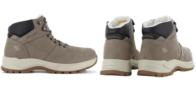 Второй айтем – серо-коричневые ботинки Dockers by Gerli. Эта модель чуть ниже предыдущей, но высота обуви, к счастью, не влияет на качество. Натуральная кожа никуда не делась, а меховая подкладка согреет вас даже в лютый мороз.