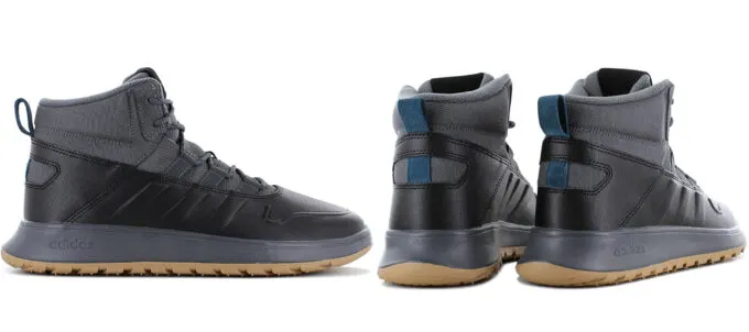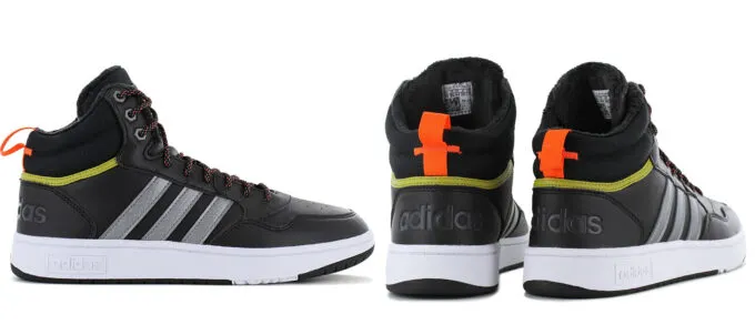 Теперь к обуви! Первый айтем – высокие кроссовки adidas Hoops 3.0 Mid WTR Winter. Модель выполнена из текстиля и искусственной кожи и оснащена прочной резиновой подошвой. Но самое важное – подкладка из текстильного меха. Она защитит ваши ноги от холодов.
