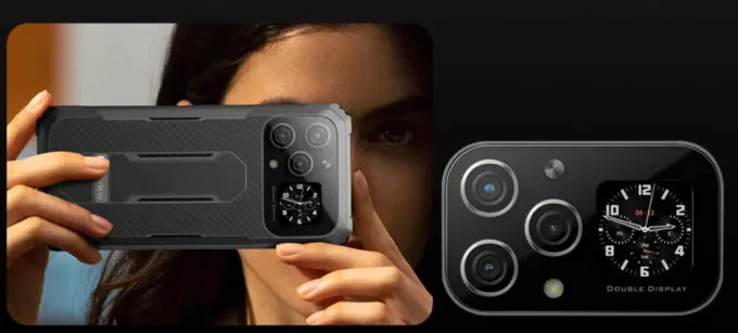 Еще одна фишка — рядом с камерой находится небольшой дополнительный дисплей. Похожий мы уже видели в модели Blackview BL9000, которая дебютировала в продаже на днях. По умолчанию там стоят часы (можно выбрать один вариант из нескольких скинов), также на экран приходят уведомления.