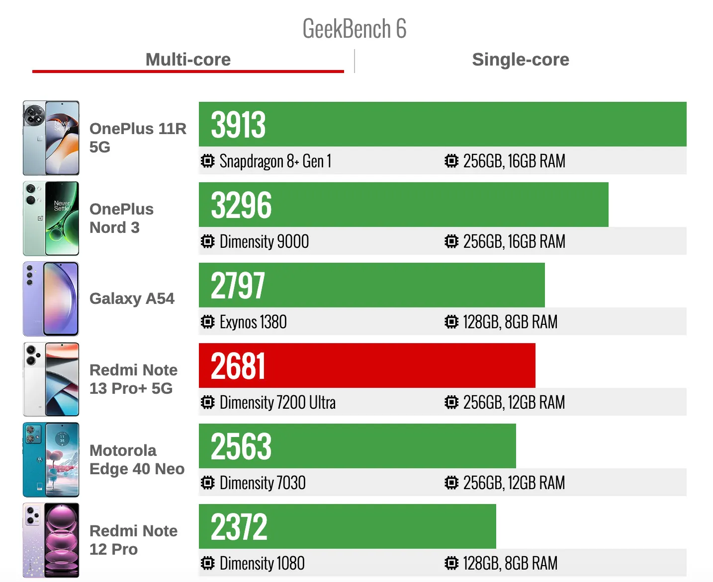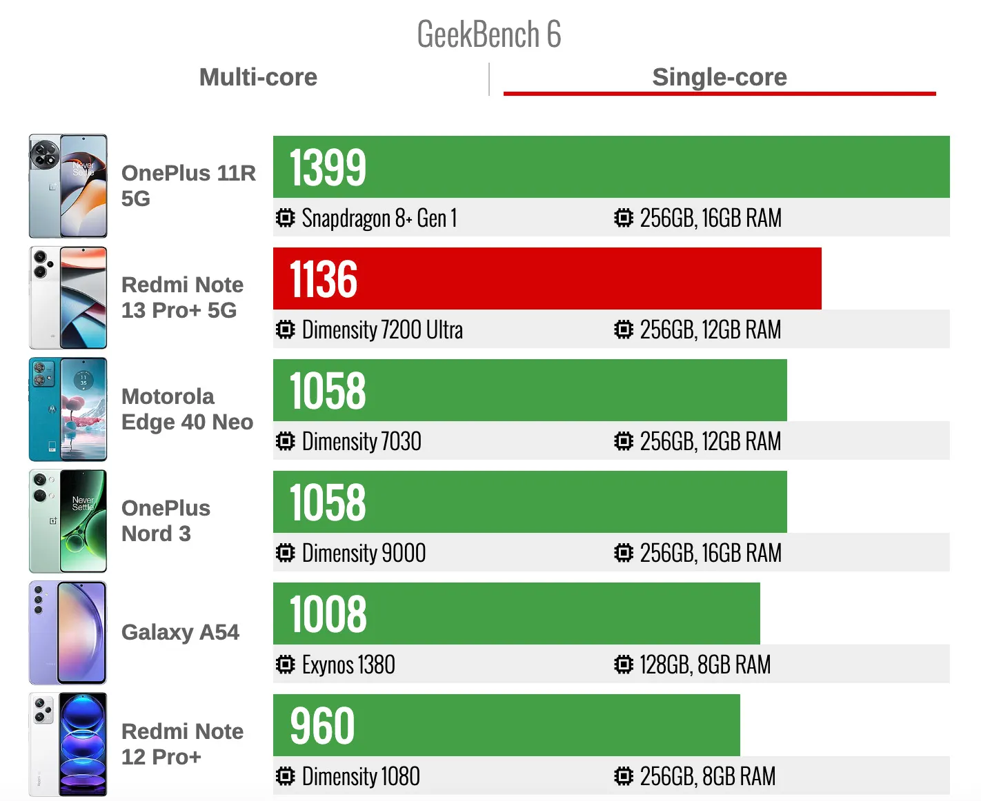 Redmi Note 13 Pro+ получил процессор MediaTek Dimensity 7200-Ultra, до 12 Гбайт ОЗУ, до 512 Гбайт встроенной памяти. Производительность телефона действительно впечатляет — приложения открываются быстро, прокрутка очень плавная. В тестах GeekBench 6 аппарат проиграл парочке более старых устройств, но здесь именно тот случай, когда «синтетика» вводит в заблуждение.