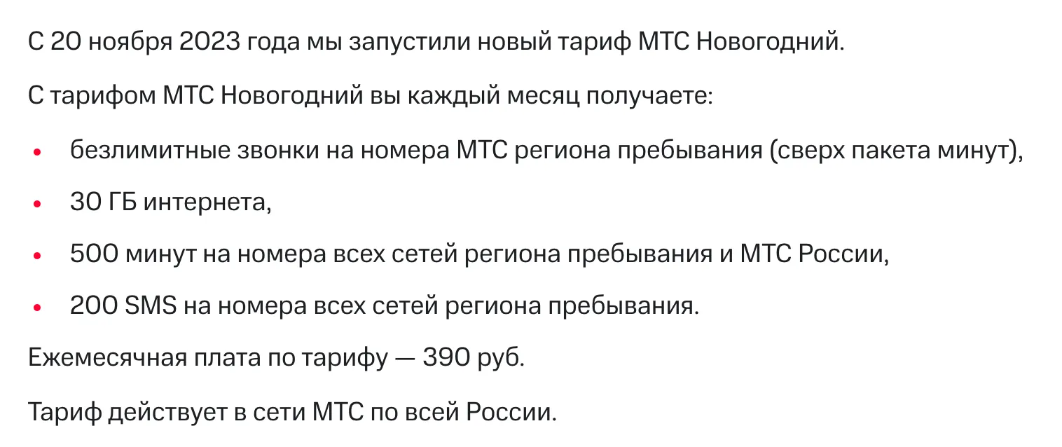 Но есть жирный нюанс — перейти на него можно только в том случае, если вы не являетесь абонентом МТС. То есть выгодными условиями российский оператор заманивает новых клиентов — акция продлится до 31 января 2024 года. В общем, решайте сами.