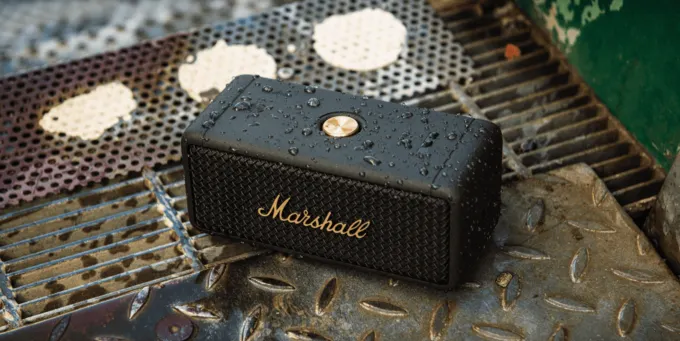 Вторая младшая колонка бренда — Marshall Emberton. В отличие от первого компакта, это устройство получило вытянутый прямоугольный корпус, стереодинамики и динамики общей мощностью 20 Вт.