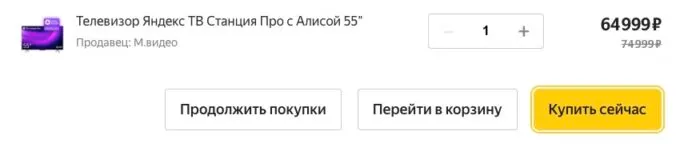 Обычно за топовую модель Яндекс ТВ Станции Про просят 75 косарей, но сейчас его можно забрать на Яндекс Маркете за 64 999 рублей. Также не забывайте, что многие банки предлагают кэшбэк до 15% на этой платформе, что позволит прилично сэкономить.