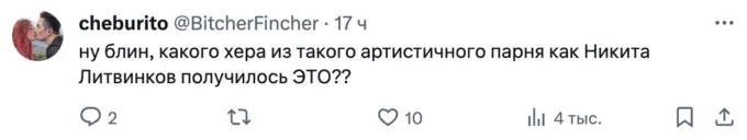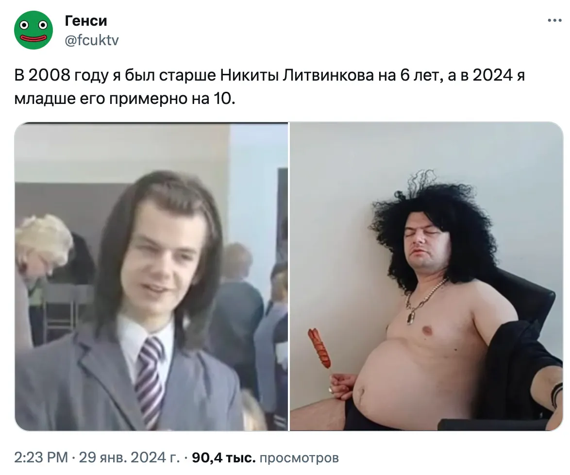 Напомним, что в ноябре 2021 года комик Гарик Оганесян внезапно нашел Литвинкова и пригласил в свой подкаст. Так мы узнали, как Никита выглядит спустя годы — экстравагантный наряд, прическа в стиле Пугачевой, увлечения алкоголем и тихая жизнь в подмосковной Электростали.