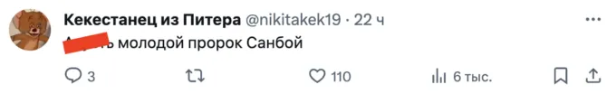 Наконец, некоторые пользователи увидели сходство между Никитой и Пророк Санбоем — ярким андерграундным музыкантом и героем видеомемов: