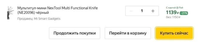 Прямо сейчас на Яндекс Маркете топовый карманный мультитул Xiaomi NexTool Mini Knife можно урвать за 956 рублей по промокоду ZIMA15. Также не забывайте, что многие банки предлагают щедрый кэшбек за покупки на этой платформе.