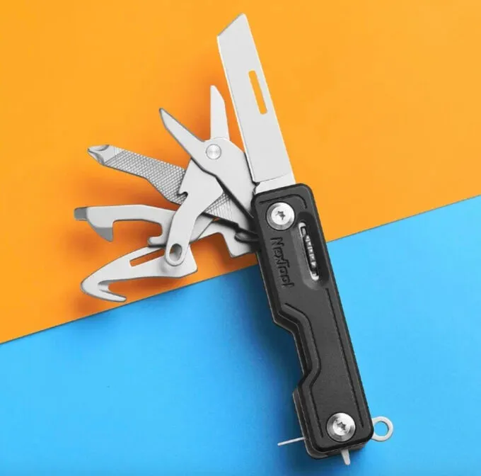 Какие впечатления? Скорее положительные. Я брал скорее ради острого ножа, открывашки, SIM-иголки и общей эргономичности. Здесь это всё на хорошем уровне, плюс удивили ножницы. Обидно за подставку для смартфона – можно было сделать продуманнее. Странноватая пилка – будто над ней совсем не запарились. Но в целом мультитул заслужил свои 7 баллов из 10: он выглядит дороже своих денег и почти не занимает места. Возможно, позже протестируем что-то более премиальное от того же бренда.