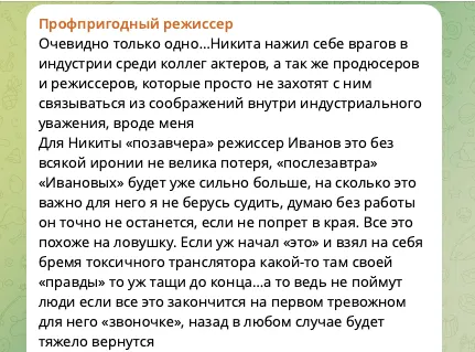 Постановщик также предположил, что скоро Никите, включившему режим правдоруба, поступит предложение от Юрия Дудя*. Но Иванов не уверен, что Кологривый согласится прийти на интервью.