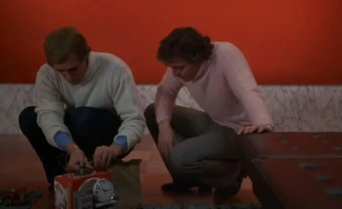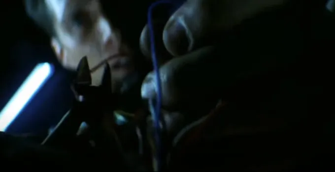 Красный и синий – противоположности: один теплый, другой холодный. Этот контраст нужен, чтобы подчеркнуть то, какой радикальный выбор стоит перед героем. Но самое главное в том, что с помощью разноцветных проводов режиссер может быстро и без слов объяснить зрителю, какие в сцене действуют правила и ставки.
