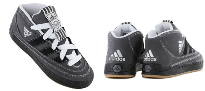 Итак, какие айтемы появились на Joom? Первая пара – серые adidas Originals Adimatic Mid YNuK. Это замшевые кроссовки, вдохновленные олдскульной скейтерской обувью от немецкого бренда. Дизайн разрабатывался совместно с португальским художником Crude, а из деталей стоит отметить объемные белые шнурки и черные полоски на боках обуви.