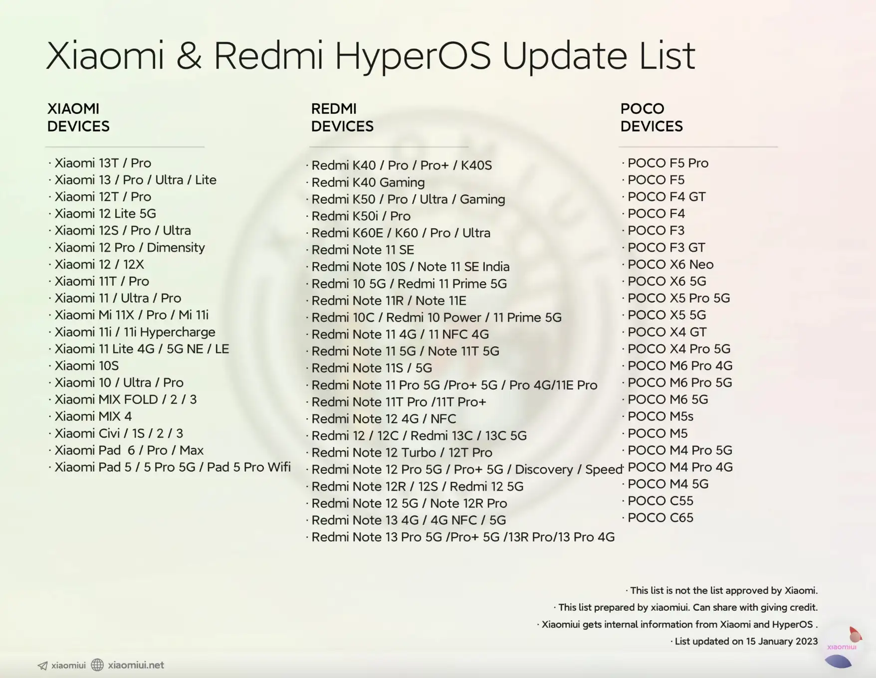 В ближайшее время большая триада китайских гаджетов — Xiaomi, Redmi и Poco — должна получить обновление до HyperOS и Android 14. Авторы Xiaomiui выяснили, какие смартфоны и планшеты попали в список совместимых девайсов.