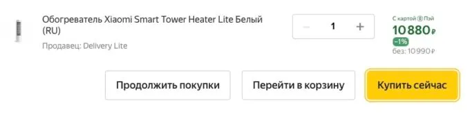 Обычно за Xiaomi Smart Tower Heater Lite просят под 15 тысяч рублей, но сейчас на Яндекс Маркете топовый умный обогреватель можно забрать за 10 990 рублей. Также не забывайте, что многие банки предлагают щедрый кэшбек за покупки на этой платформе.