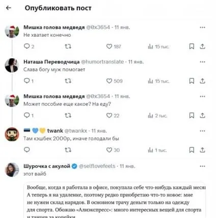 В твиттере тоже обратили на это внимание и удивились любви автора к AliExpress и бонусному возврату денег от банка. «С кэшбеком в 2 тысячи любой сможет хорошо жить», – написала Елена Чемезова. «Оч интересно, у меня зп в 6 раз меньше, но кэшбек такой же. Просчитался, но где…» – заинтересовался Кир просто Кир.