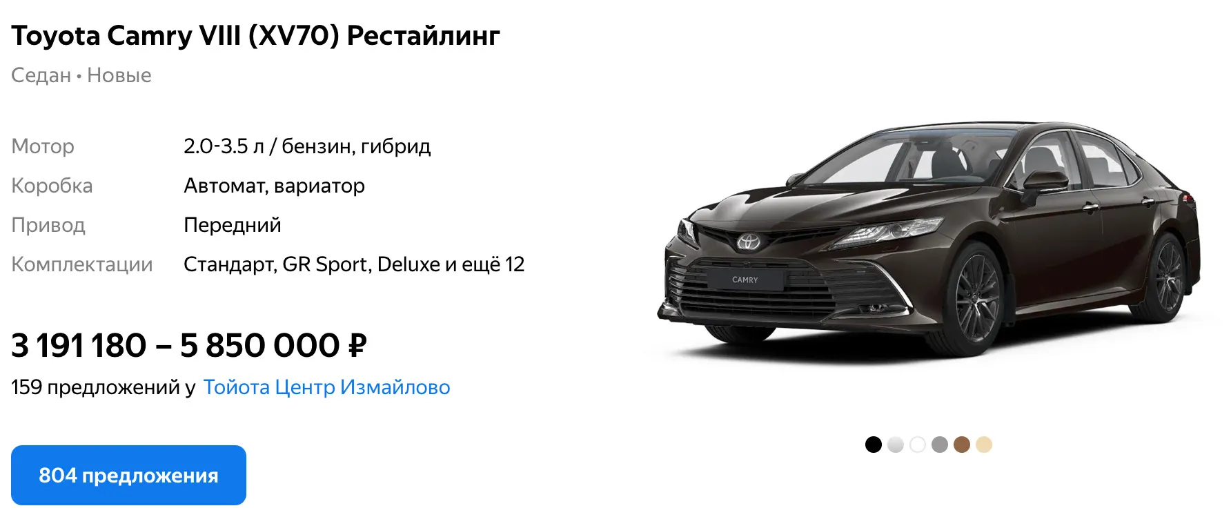 Сколько стоит новая Toyota Camry сейчас? Автомобиль свежайшего восьмого поколения — не меньше 3,2 млн рублей.