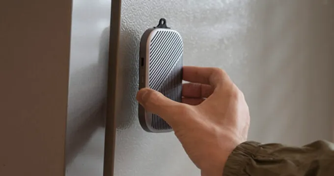 Устройство DUVOSS U3 имеет компактные размеры, два 40-мм динамика общей мощностью 4 Вт, поддержку Bluetooth 5.0, защищенный корпус. На задней стороне спикера находится магнит, так что колонку можно прицепить к любой металлической поверхности. Но лучше всего она смотрится на задней панели смартфона — например, iPhone с MagSafe ее отлично удержит. Также тут есть отверстие под карабин.