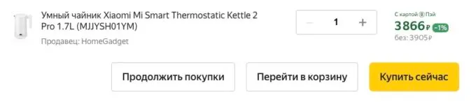 Прямо сейчас умный чайник Xiaomi Mi Smart Thermostatic Kettle 2 Pro можно купить на Яндекс Маркете всего за 3905 рублей. Также не забывайте про кэшбеки некоторых банков, которые позволят сэкономить до тысячи рублей.