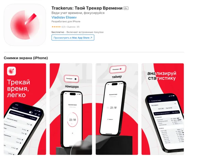 Trackerus — приложение, которое подойдёт тем, кто любит фиксировать, сколько времени было отведено под ту или иную задачу. Есть два режима: классический таймер и тот самый Pomodoro с разбивкой на несколько интервалов. Всё реально максимально просто реализовано, поэтому респект разработчикам.