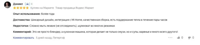 Самая имбовая фича — интеграция с Mi Home. Так вы сможете удалённо управлять блендером и получите огромный каталог рецептов, с которым сможете прокачать свои навыки приготовления смузи и супов. Обратите внимание, что выбирать нужно именно версию EU с логотипом Xiaomi на корпусе. Версию со значком Mijia стоит избегать, поскольку она предназначена для Китая, и в ней нет русского языка.
