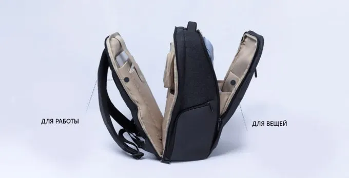 Количеству секций в Xiaomi Travel Business Backpack 2 позавидует даже Вассерман. Начнём с малого — в нём предусмотрен секретный карман на магните под наличку, карты или паспорт. По бокам есть карманы под бутылку с водой или мелкие аксессуары. Основных отсеков тут сразу два, а раскрывается наш рюкзак как Tesla Model X. В него спокойно можно впихнуть сразу два 16-дюймовых MacBook Pro, несколько iPad, портативки, беззеркальную камеру, множество мелких аксессуаров и даже комплект одежды. Объём рюкзака составляет шокирующие 26 литров. Больше — только чемоданы.