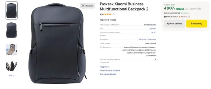 Прямо сейчас бомбовый Xiaomi Travel Business Backpack 2 можно забрать на Яндекс Маркете всего за 4957 рублей. А с кэшбеками некоторых банков он обойдётся ещё дешевле.