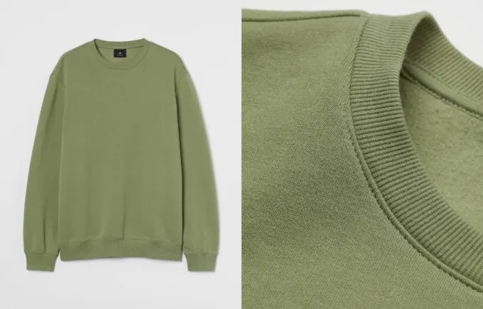 Переходим к базе, и здесь нас встречает классический зеленый свитшот без опознавательных знаков и лишних надписей. Айтем выполнен из хлопка, полиэстера и вискозы.