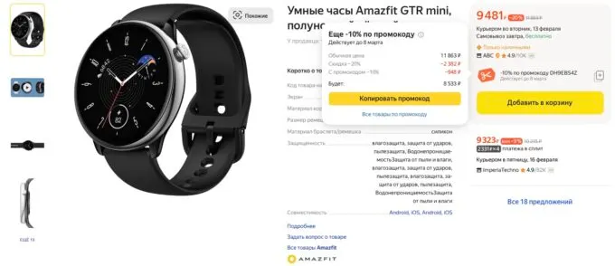 Обычно за Amazfit GTR Mini просят под 12 тысяч рублей, но сейчас на Яндекс Маркете эти шикарные смарт-часы можно забрать за 8533 рубля по промокоду DH9EBS4Z.