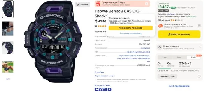 Обычно за Casio G-Shock GBA-900 просят под 20 тысяч рублей, но сейчас на Яндекс Маркете их можно забрать за 12 660 рублей по промокоду ACC15. Также вы можете срубить кэшбек до 30% при оплате картами некоторых банков или сбить цену на 30% через Яндекс Пэй.
