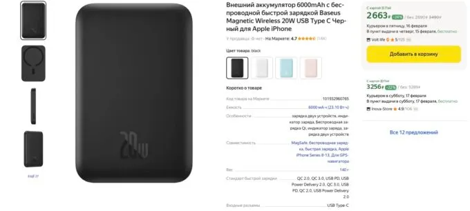 Обычно такие вещи стоят дороже 6 тысяч рублей, но сейчас Baseus Magnetic Mini Wireless Power Bank можно урвать на Яндекс Маркете от 2690 рублей. А с кэшбеком некоторых банков он обойдётся в ~2 косаря.