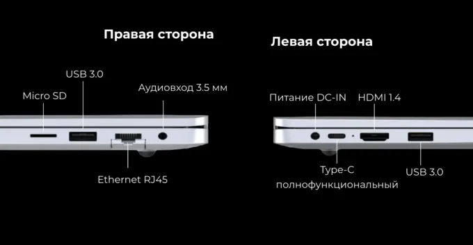 Также компьютер вышел с продвинутой системой охлаждения, состоящей из одного большого кулера, батарейкой, которой должно хватить на 17,5 часов работы, семью портами для подключения зарядки и аксессуаров. В кнопку питания встроен сканер отпечатков пальцев.