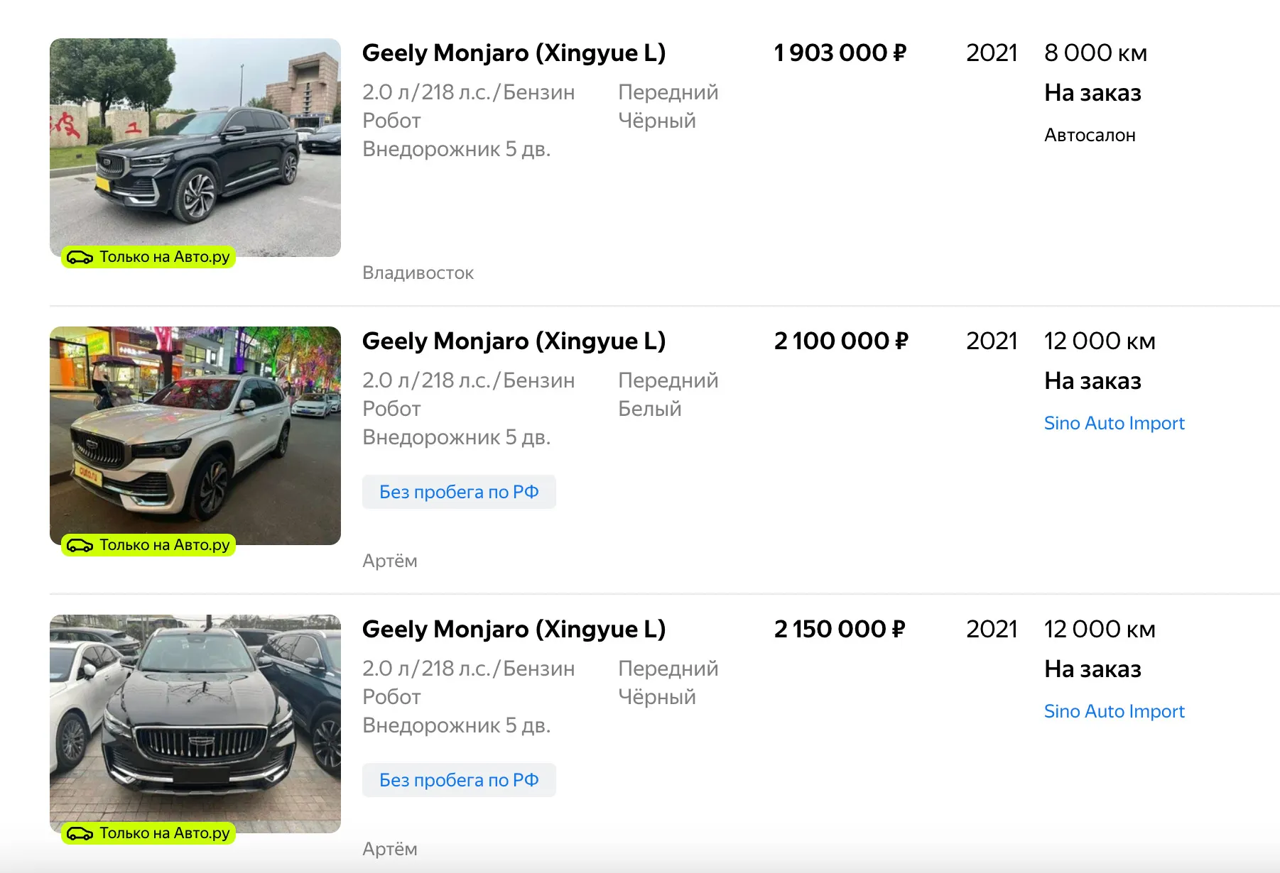 Официально новый Monjaro стоит от 4 694 990 до 4 994 990 рублей. Но если искать автомобили на сайтах с объявлениями и выбирать серых дилеров, то можно сэкономить около двух миллионов рублей. Например, частники из Нижнего Новгорода могут привезти внедорожник Geely из Китая за 2,7 млн рублей.