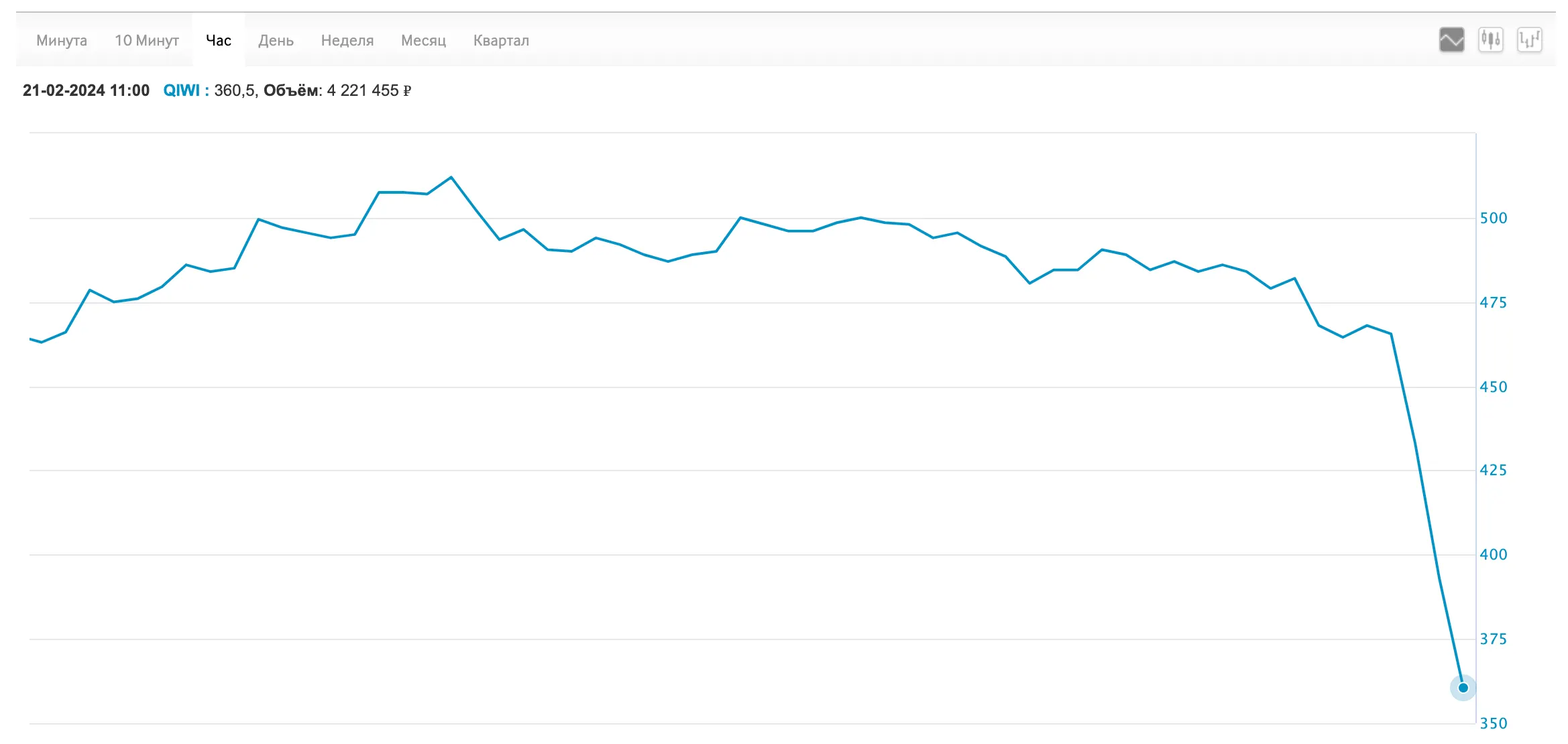 Акции QIWI на Московской фондовой бирже теряют более 24% на фоне новостей.