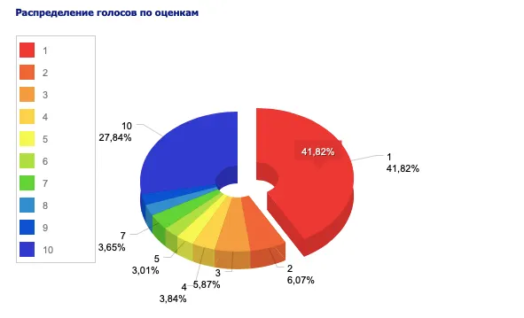 Но у сериала все равно есть проблемы, и его качество оставляет желать лучшего. Вероятно, поэтому проекту ставят слишком много единиц. Просто взгляните на график распределения голосов по оценкам: