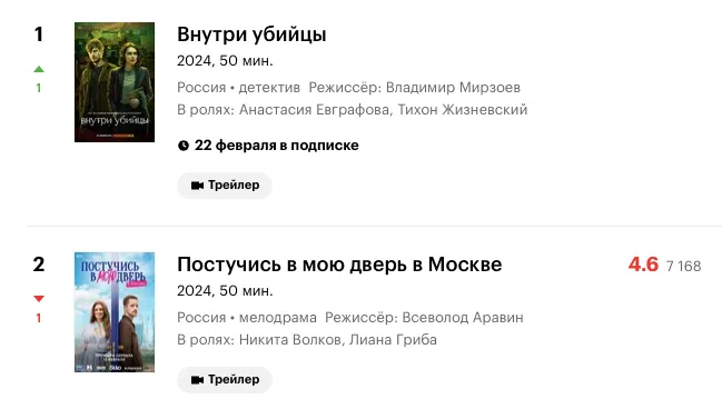 Но есть и хорошая новость для создателей: проект находится на втором месте в списке самых популярных сериалов Кинопоиска и уступает только детективу «Внутри убийцы». То есть, страницу «Постучись в мою дверь в Москве» посещает гигантское количество пользователей Кинопоиска, а значит, сериал явно интересен людям.