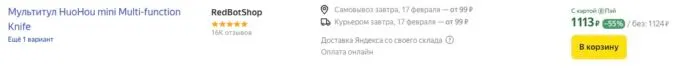 Обычно такие мультитулы стоят около 2-3 тысяч рублей, но сейчас на Яндекс Маркете компактный Xiaomi HuoHou Mini можно урвать всего за 1124 рубля. А с кэшбеками некоторых банков он обойдётся дешевле 1 косаря.